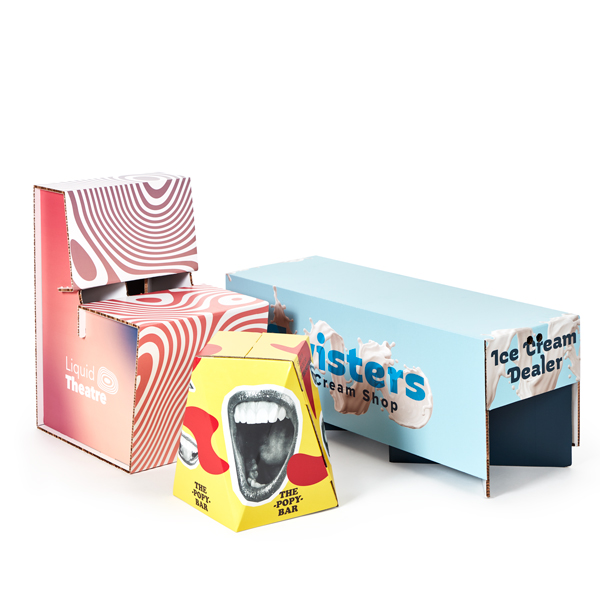 • Chairs: customisable cardboard chairs to decorate your stand or provide a practical solution for your store. They are lightweight and easy to transport, plus they can be recycled when no longer required