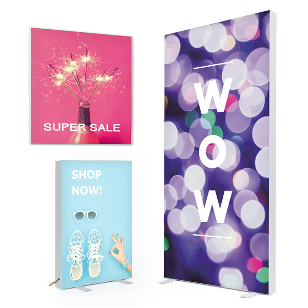 • Tension Fabric Frames: choose from backlit, freestanding and wall-mounted options to decorate your workplace, shop or trade fair stand