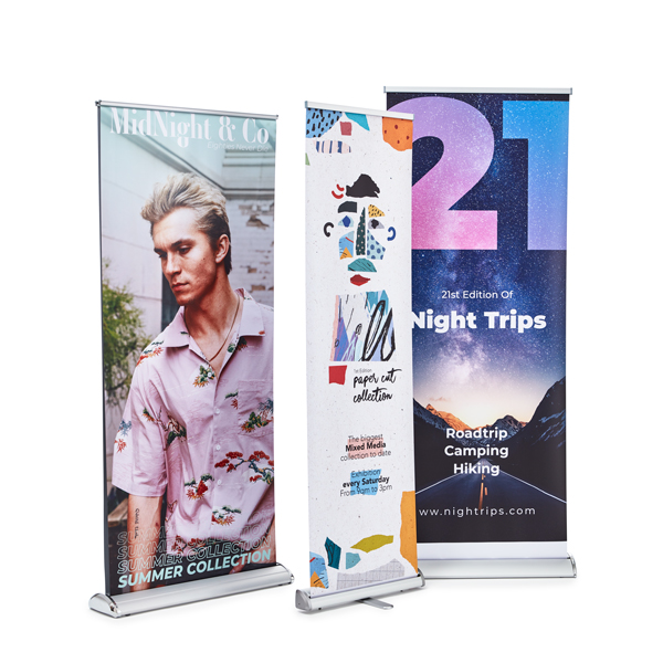 • Roller Banners: promote your brand at exhibitions or events with seven different types of roller banner available, in a range of sizes, materials and folding mechanisms/stands. There are options for indoor or outdoor use, plus double-sided models