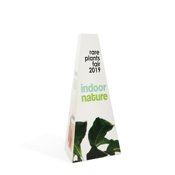 - Prism and pyramid-shaped displays - made from Corrugated plastic, with various models of different shapes and sizes to convey your message. Take a look at the Giza or the Boston, which can be folded up after use